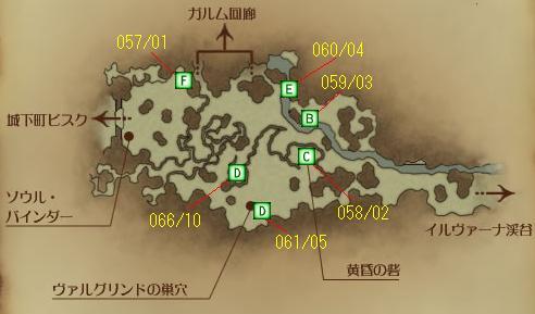 | 069 | ヴァルグリンドの巣穴02 | B | 60 | バエルx6 | ヴァルグリンド バルカー近くの扉手前、右側 | |